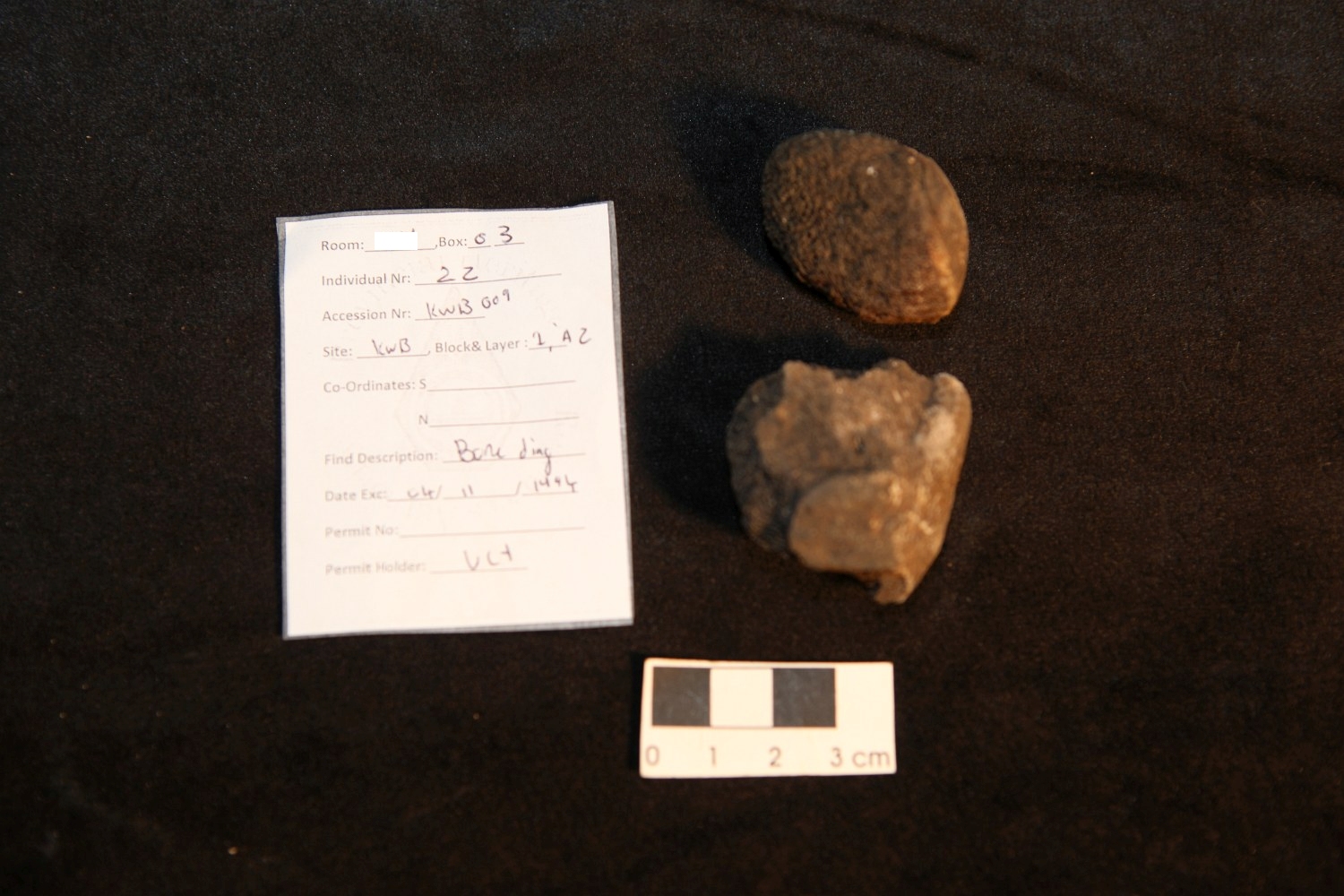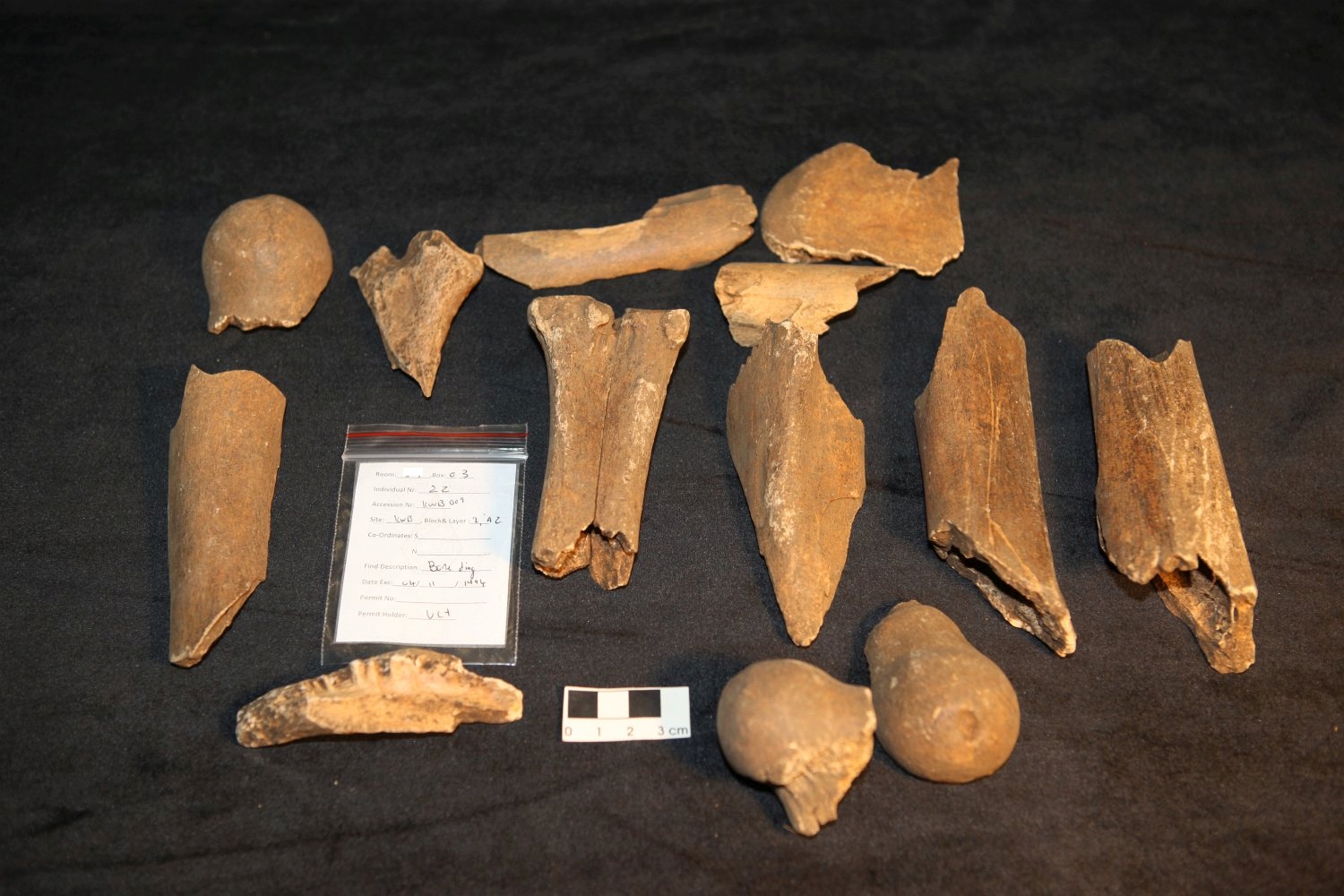 Attributions and conjectures [Source - Michelle House for FHYA, 2020, using AMAFA materials: Diagnostic fauna are pieces of animal bone which can be identified to a species level. In this excavation, these mostly comprise cattle, goat and sheep bones from the food that people ate. From this data, archaeologists are able to extract information on the diets of the people who lived at sites. Important information can also be extracted from the animal bones themselves, such as butchering and slaughtering strategies. Scientific techniques are also able to extract information on what food the animals ate. This gives information on the environment during the occupation of a site, provisioning and herding strategies.]