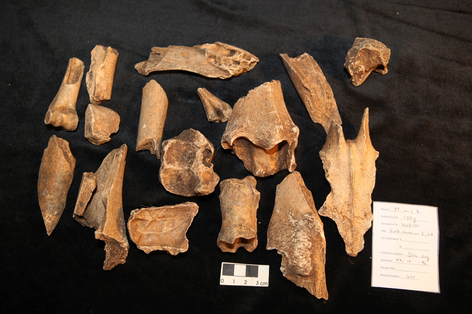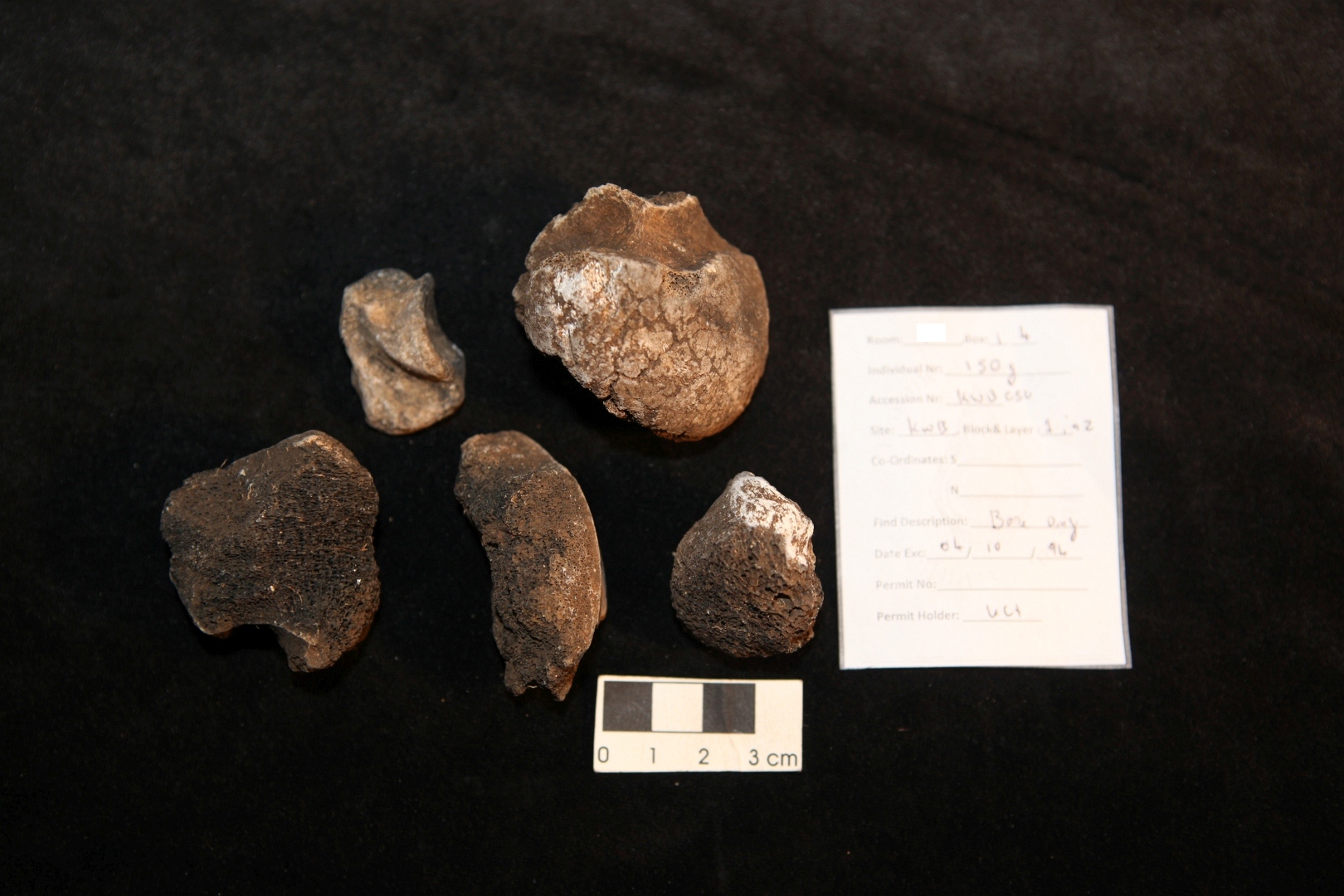 Attributions and conjectures [Source - Michelle House for FHYA, 2020, using AMAFA materials: Diagnostic fauna are pieces of animal bone which can be identified to a species level. In this excavation, these mostly comprise cattle, goat and sheep bones from the food that people ate. From this data, archaeologists are able to extract information on the diets of the people who lived at sites. Important information can also be extracted from the animal bones themselves, such as butchering and slaughtering strategies. Scientific techniques are also able to extract information on what food the animals ate. This gives information on the environment during the occupation of a site, provisioning and herding strategies.]
