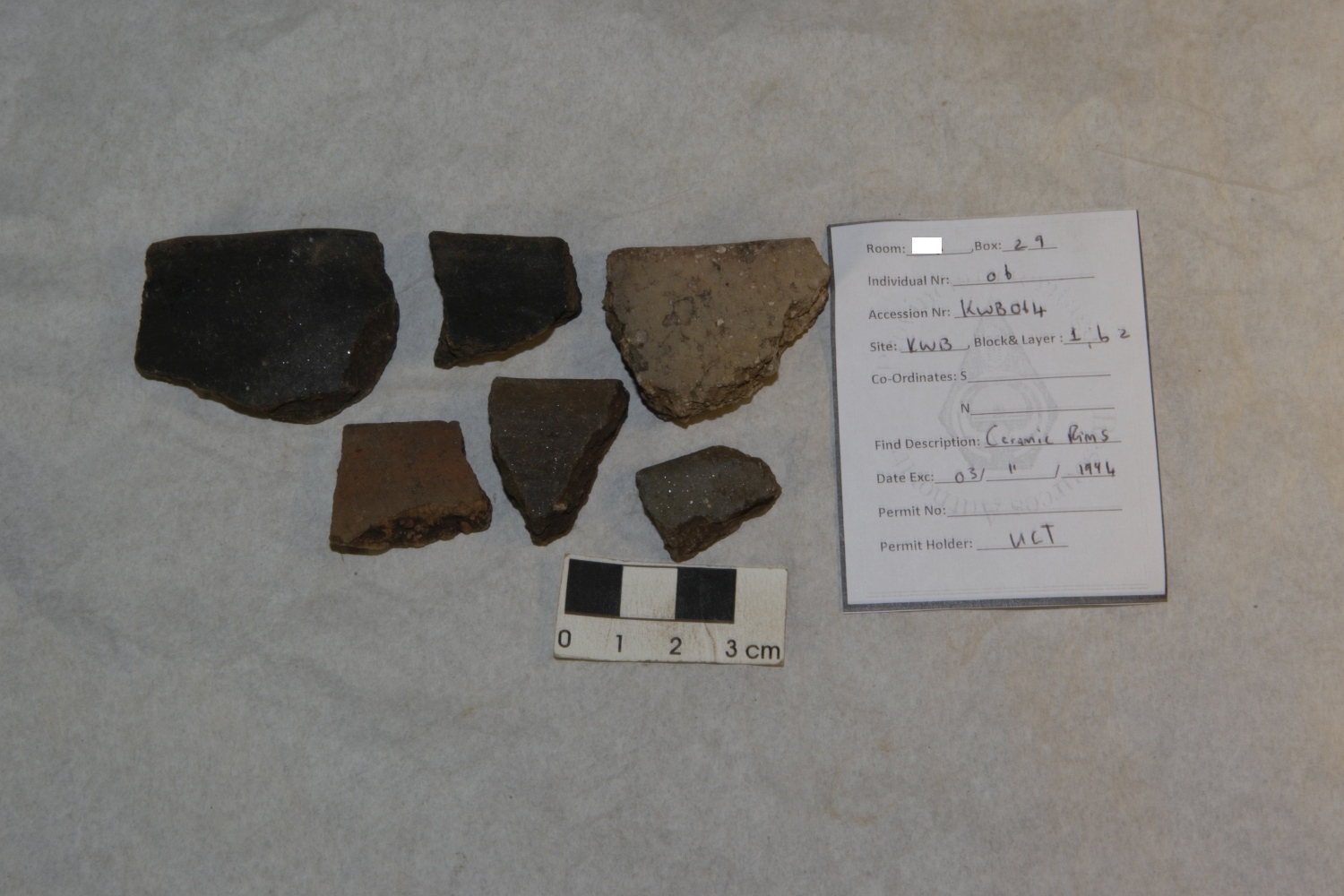 Attributions and conjectures [Source - Michelle House for FHYA, 2020, using AMAFA materials: Diagnostic pottery are those with decorations or a piece that contains a part of the profile of the vessel. Southern African pottery is made from clay. Because it is baked, it preserves well in the archaeological record. Pottery was used for storage, beer brewing, food distribution and collecting water. Pot-makers decorated their vessels and there seems to be a correlation between linguistic groups and decoration type, the shape of a vessel and decoration placement. Scientific techniques can also identify what was stored in the pot by analysing the residues on the pieces of pottery found in excavation.]