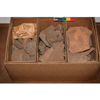 [Source - Chloe Rushovich for FHYA, 2019: File contains material identified by eThembeni Cultural Heritage Management for FHYA using KZNM materials as 'undiagnostic pottery', a box with markings, and an index card]
