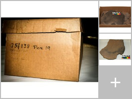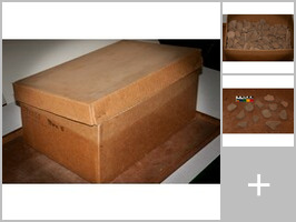 [Source - Chloe Rushovich for FHYA, 2018, using material provided by eThembeni Cultural Heritage Management and material provided through personal communication with Gavin Whitelaw: Following a visit to uMgungundlovu with George Chadwick, who worked at the Natal Education Department and was a National Monuments Council representative for a number of years, Oliver Davies created a Natal Museum archaeological site record for the site. He recorded the owner of the site as the National Monuments Commission. Davies wrote in his site record that "a number of huts have recently been uncovered, of a regular pattern: beaten clay floors which is fairly well preserved; clay hearth with raised rim, preserved in many cases; in one or two cases the sockets of the posts which formed the hut-walls. Also, several depressions which are thought to be collapsed grain-silos, and an area where slag and fragments of copper have been found, probably the site of the workshops. Some low banks with bone-fragments in the earth, thought to be middens." The phrasing of Davies's report suggests that Chadwick had already exposed hut floors on the site in 1971 through a process of shovel-clearing. Gavin Whitelaw contends that Chadwick might have asked Davies to accompany him to the site to view the progress of this shovel-clearing work. By 1973, Chadwick and E. Wally Hyde, a National Monuments Council Honorary Officer, were shovel clearing on the brewery hut in the isigodlo at uMgungundlovu. Whitelaw suggests that Chadwick asked Tim Maggs, at the time newly appointed to the Natal Museum, to view the shovel-clearing action taking place on the site. Maggs intervened to curb this action. Maggs then conducted a preliminary survey of the Royal iKhanda area along with George Chadwick. 1973. A National Monuments Council communication dated 1 November 1973 incorporates a report from George Chadwick in which he states that in July 1973 he and Maggs had uncovered several floors, collected pottery and beads, and surveyed in detail the floors already uncovered. Two floors were notable: the brewery hut (labelled as Hut 11 in Parkington and Cronin's 1979 article 'The Size and Layout of Mgungundlovu 1829-1838') and the weapon storage hut (probably the hut labelled as Hut 23 in Parkington and Cronin's 1979 article 'The Size and Layout of Mgungundlovu 1829-1838'). The physical work was apparently undertaken largely by Hyde and his labour team. The material from this preliminary survey and the curbed shovel clearing was excavated and collected in 1973, but is housed with Martin Hall's material from his 1975 excavation at the KwaZulu-Natal Museum as a result of a curatorial decision on the part of the museum. eThembeni was tasked with photographing the contents of a randomly chosen single sorting tray for each type of undiagnostic and diagnostic material, and for each field season. The FHYA has not endeavoured to check precisely how eThembeni interpreted this specification. The FHYA arranged the material external to the Hall material into a Maggs series and further 1973 subseries, in which 'files' sit. These files contain digital 'items' which consist of the boxes and their contents. Notably, the box labelled 75/139.021, containing the isicoco burnishing stone, is sitting with the Hall 1975 material, as there seems to be some Hall material mixed in the Maggs material in this box.]