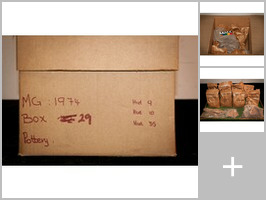 [Source - Chloe Rushovich for FHYA using material provided by eThembeni Cultural Heritage Management, 2018: In 1974 and 1975 members of the Archaeology Department of the University of Cape Town (UCT), led by Parkington, Mike Cronin, Cedric Poggenpoel, and Heinz Ruther, a survey specialist, explored the size and layout of the site and excavated. Parkington noted to the FHYA that his primary interest in the site related to the organisation of space. They were further assisted by Jeremy Baskin, John Wright, Chrissie Sievers, Simon Hall, Polly Scott and Frank Silberbauer. In 1975 advice was also provided by Martin Hall and Tim Maggs. During these fieldwork periods, permanent datum points were established over an area of the hillside that probably contained the whole site. Some 184 daga floors were plotted and recorded photogrammetrically, and 36 were excavated as individual units. One half of the pit in the Bheje area was also excavated. Amafa Pietermaritzburg holds 40 large cardboard boxes of artefacts excavated in 1974 and 1975. This material includes thousands of fragments of diagnostic and adiagnostic pottery sherds; also, some beads; and a small quantity of fragments of adiagnostic teeth and bones. The KwaZulu-Natal Museum houses most of the Parkington, Cronin and Poggenpoel material from these excavations. The FHYA arranged this material external to the Hall material into a Parkington, Cronin and Poggenpoel 1974 and 1975 series in which 'files' sit. These files contain digital 'items' which consist of the boxes and their contents.]