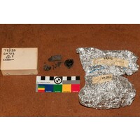 [Source - Chloe Rushovich for FHYA, 2019: File contains material identified by eThembeni Cultural Heritage Management for FHYA using KZNM materials as 'carbon', a box with markings, and an index card]