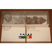 [Source - Chloe Rushovich for FHYA, 2019: File contains material identified by eThembeni Cultural Heritage Management for FHYA using KZNM materials as 'mixed - pottery, grindstones', a box with markings, and an index card]