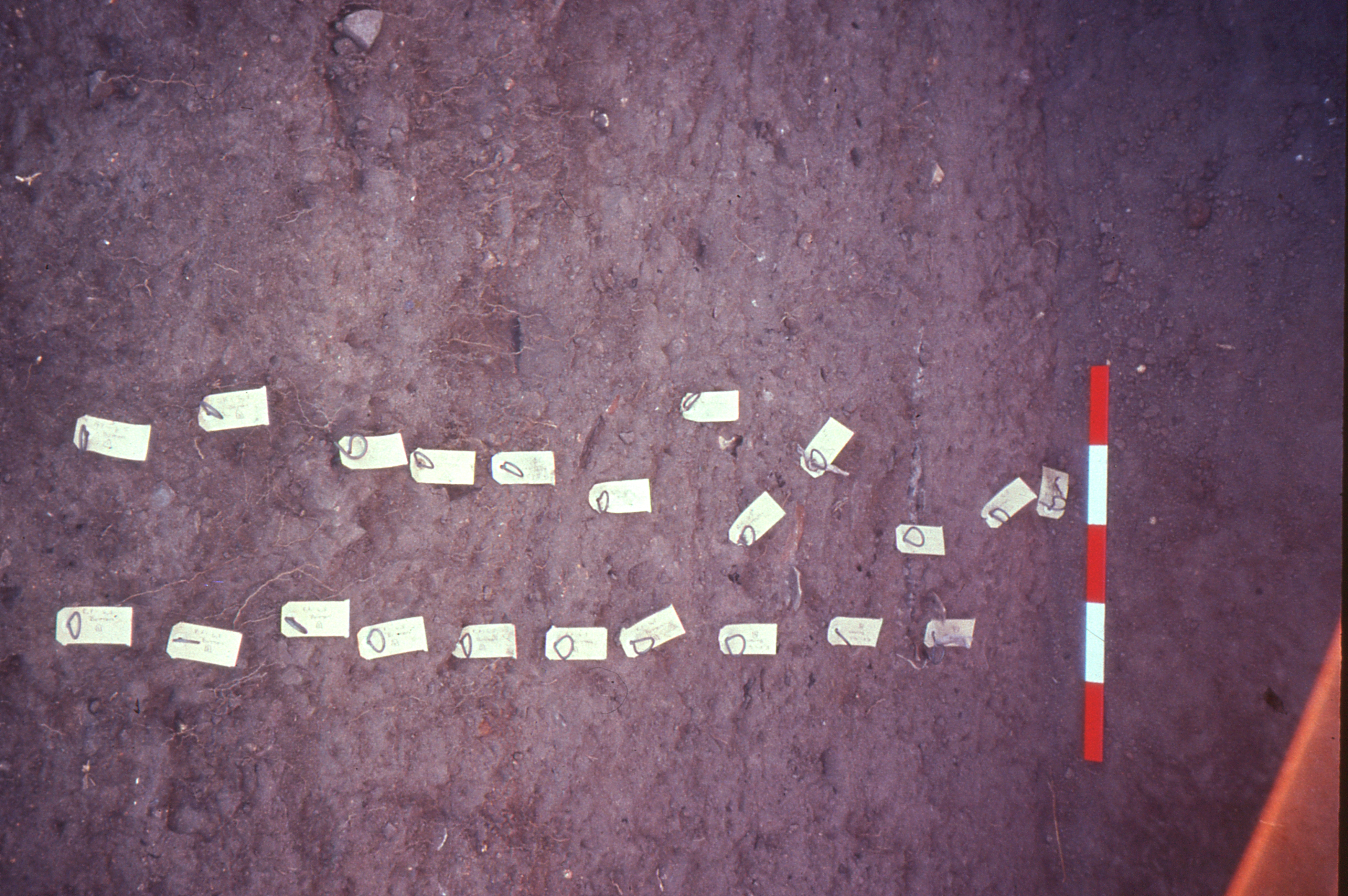 Attributions and conjectures [Source - Chloe Rushovich, 2019, for FHYA using information provided by Gavin Whitelaw: Slide of photograph of a section at uMgungundlovu (national site number 2831AD 004) taken by Martin Hall in 1978. Hall took a series of photographs of the 1978 field school excavations run by Oliver Davies.]