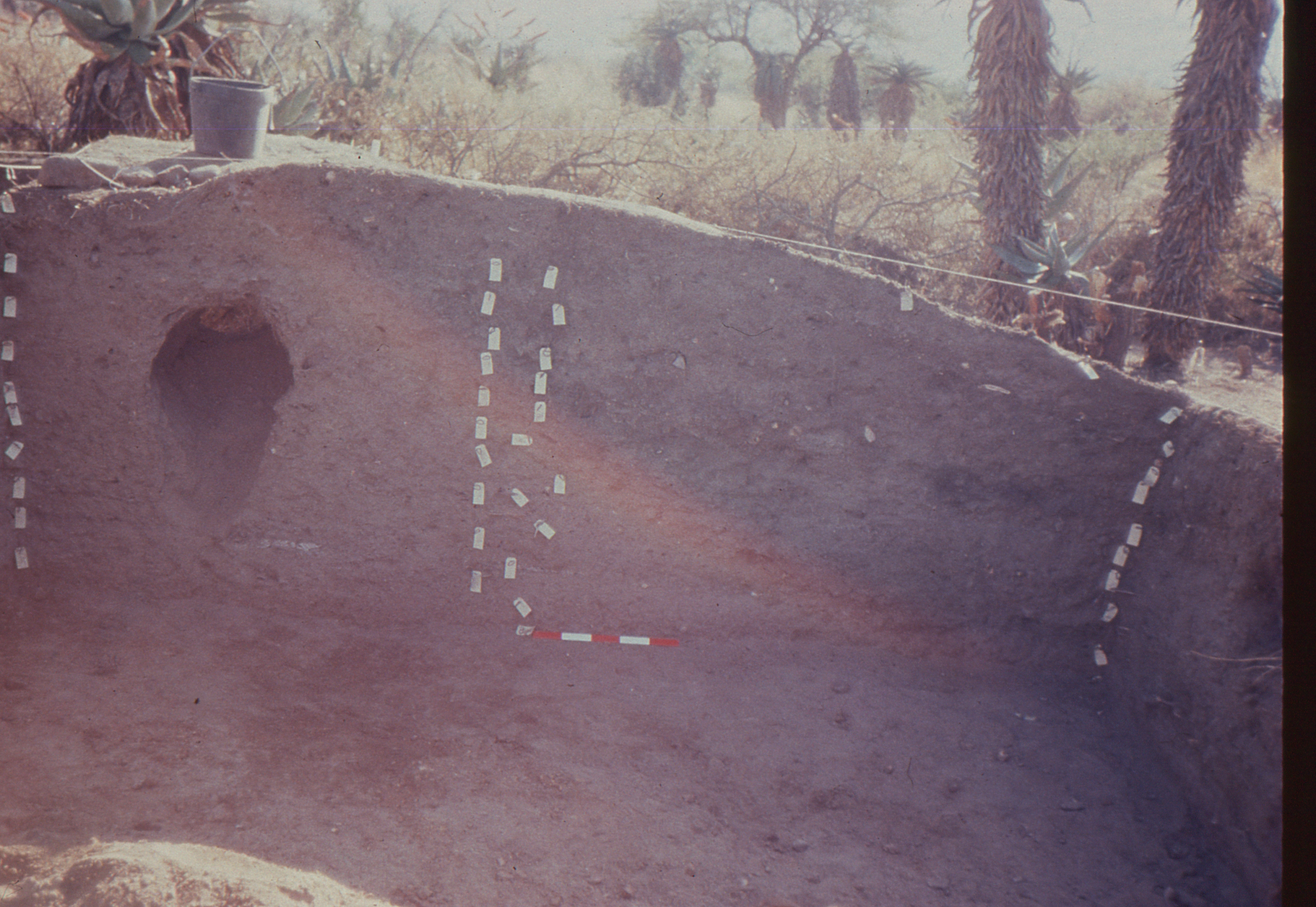 Attributions and conjectures [Source - Chloe Rushovich, 2019, for FHYA using information provided by Gavin Whitelaw: Slide of photograph of an excavated midden at uMgungundlovu (national site number 2831AD 004) taken by Martin Hall in 1978. Hall took a series of photographs of the 1978 field school excavations run by Oliver Davies.]