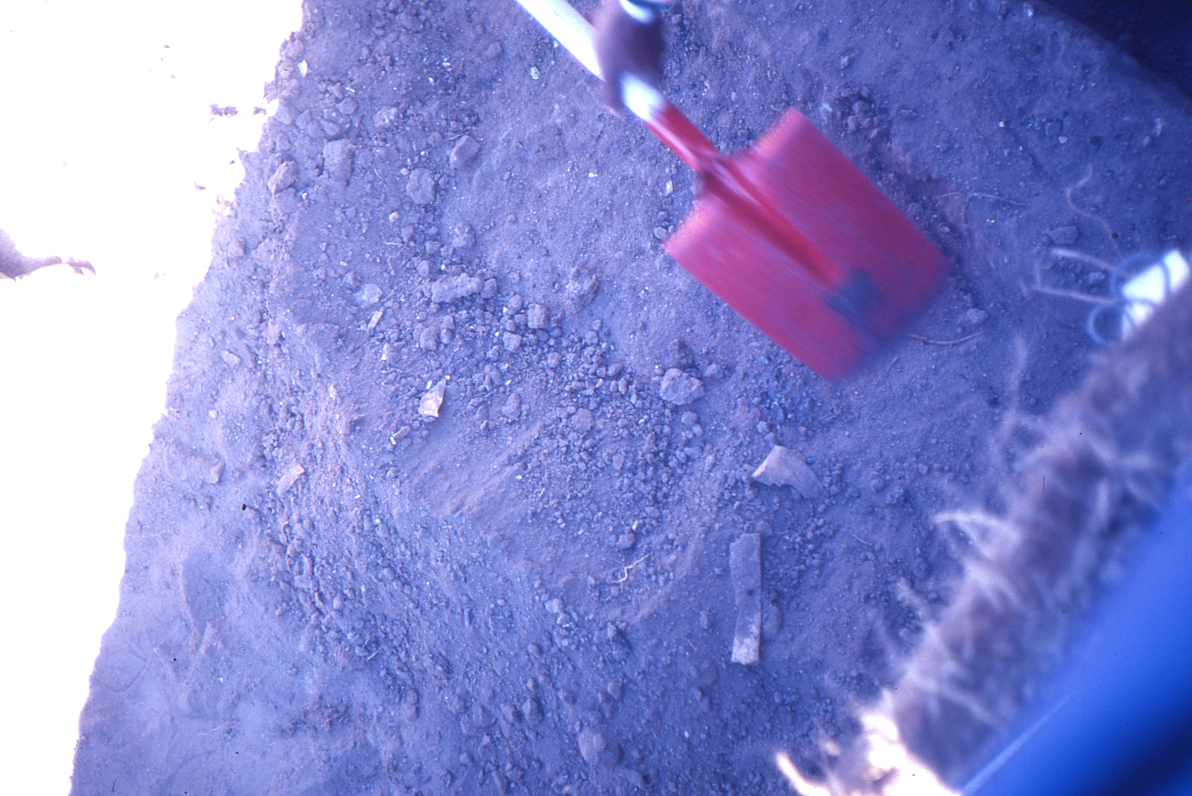 Attributions and conjectures [Source - Chloe Rushovich, 2019, for FHYA using information provided by Gavin Whitelaw: Slide of photograph of a midden excavation at uMgungundlovu (national site number 2831AD 004) taken by Martin Hall in 1978. Hall took a series of photographs of the 1978 field school excavations run by Oliver Davies.]