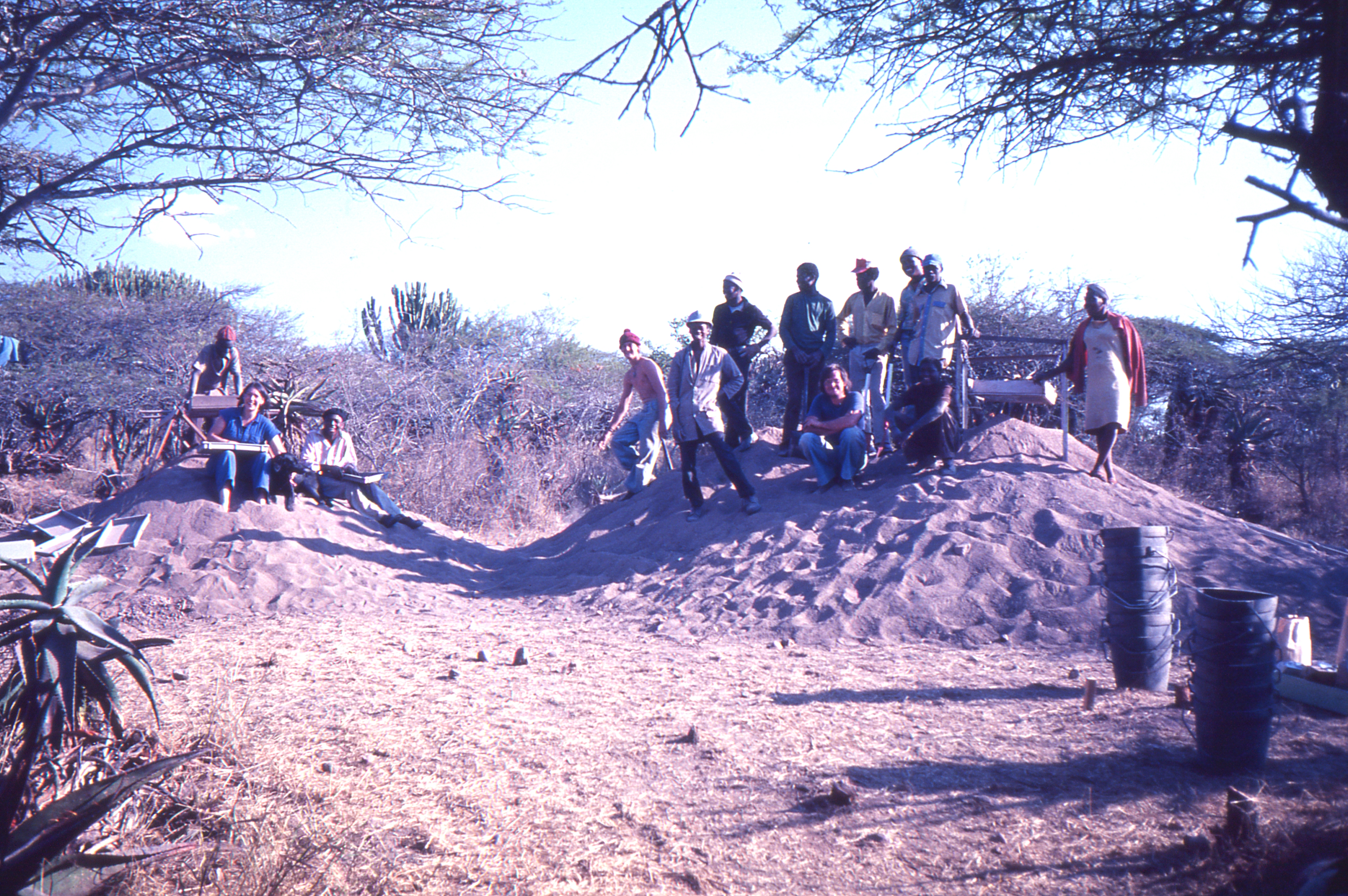 Attributions and conjectures [Source - Chloe Rushovich, 2019, for FHYA using information provided by Gavin Whitelaw: Slide of photograph of the 1978 Field School group at uMgungundlovu (national site number 2831AD 004) taken by Martin Hall in 1978. Hall took a series of photographs of the 1978 field school excavations run by Oliver Davies.]