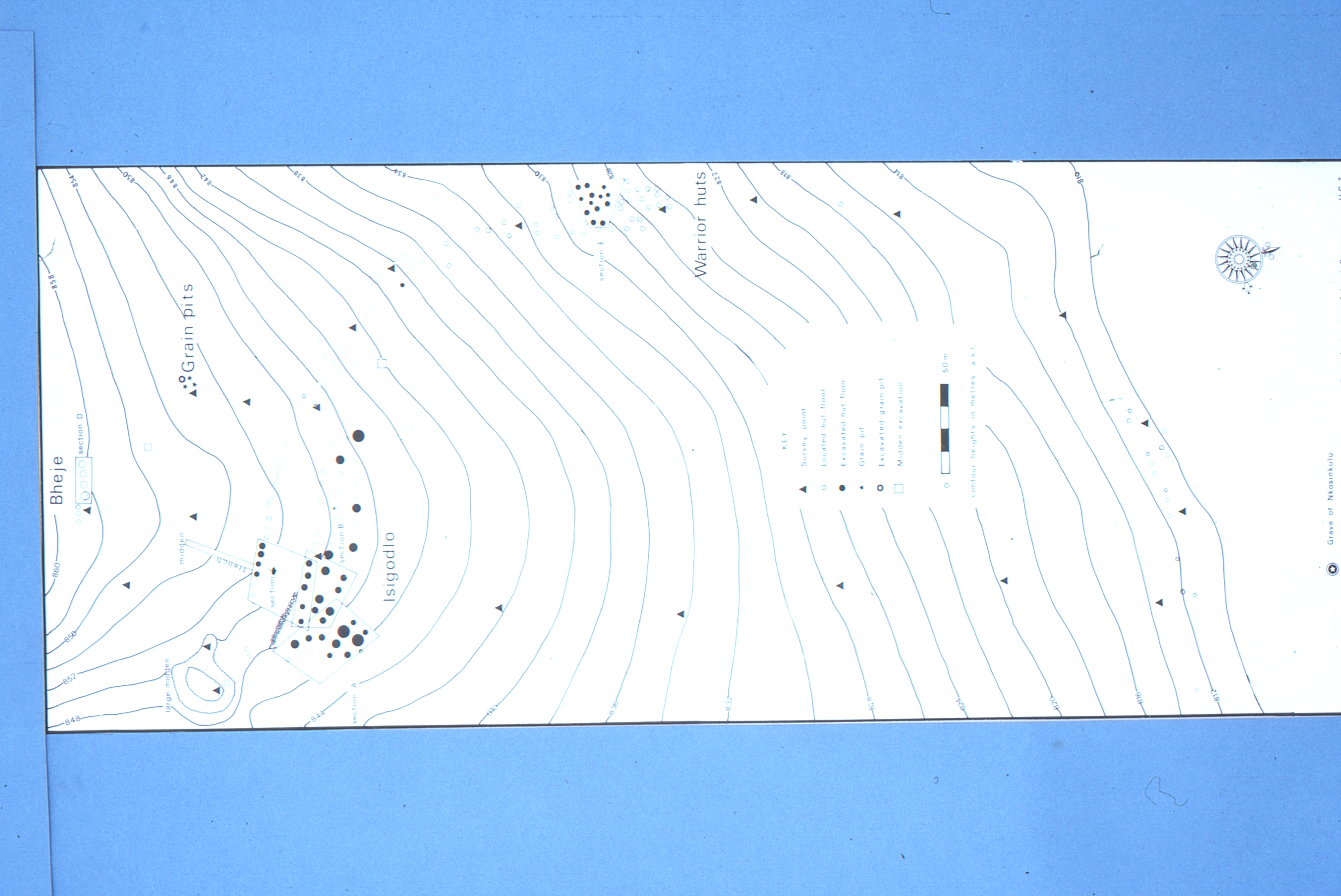 Attributions and conjectures [Source - Chloe Rushovich, 2019, for FHYA using information provided by Gavin Whitelaw: Slide of photograph of a plan of uMgungundlovu taken by Martin Hall in 1978. Hall took a series of photographs of the 1978 field school excavations run by Oliver Davies.]