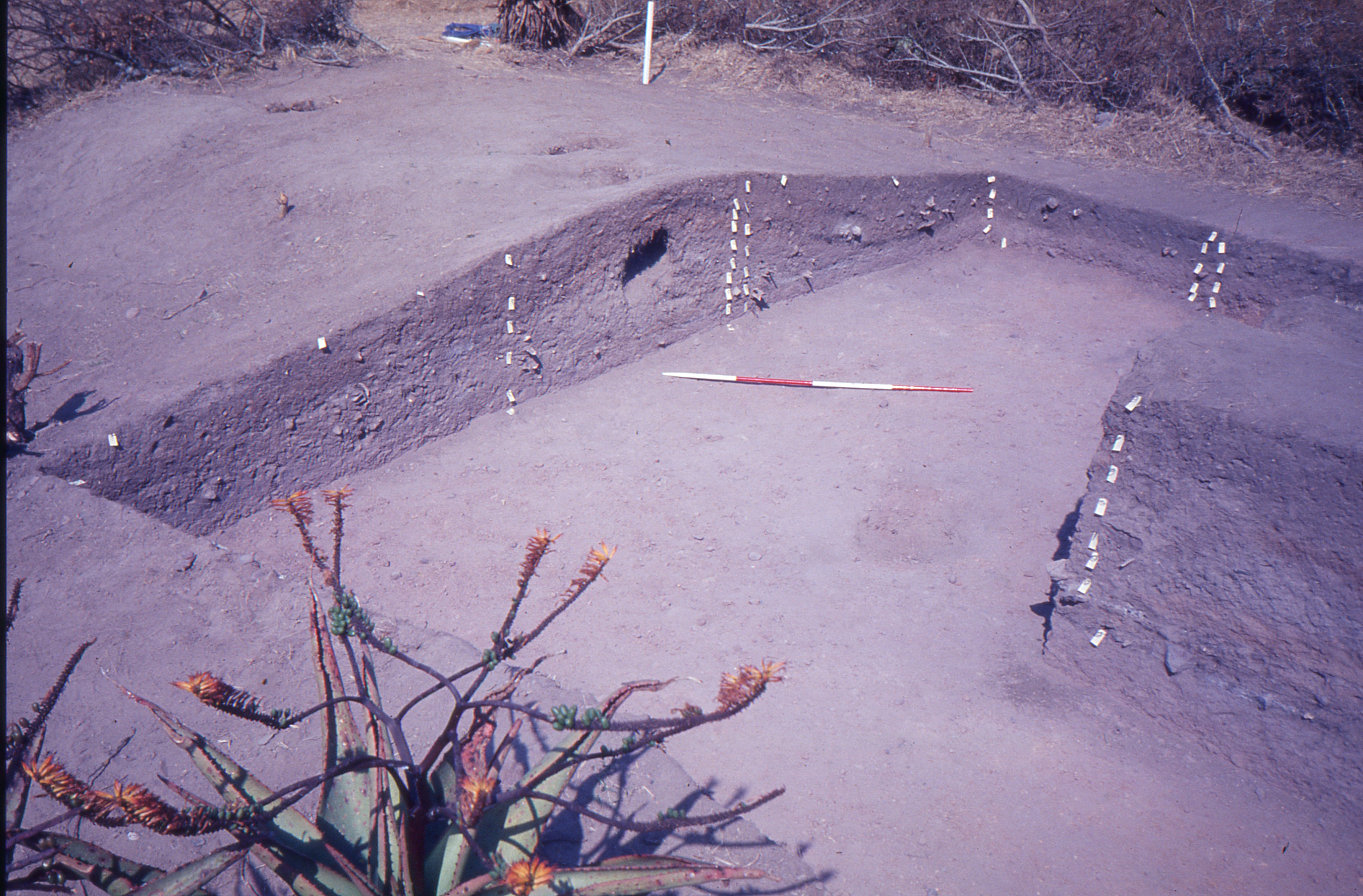 Attributions and conjectures [Source - Chloe Rushovich, 2019, for FHYA using information provided by Gavin Whitelaw: Slide of photograph of a midden excavation at uMgungundlovu (national site number 2831AD 004) taken by Martin Hall in 1978. Hall took a series of photographs of the 1978 field school excavations run by Oliver Davies.]