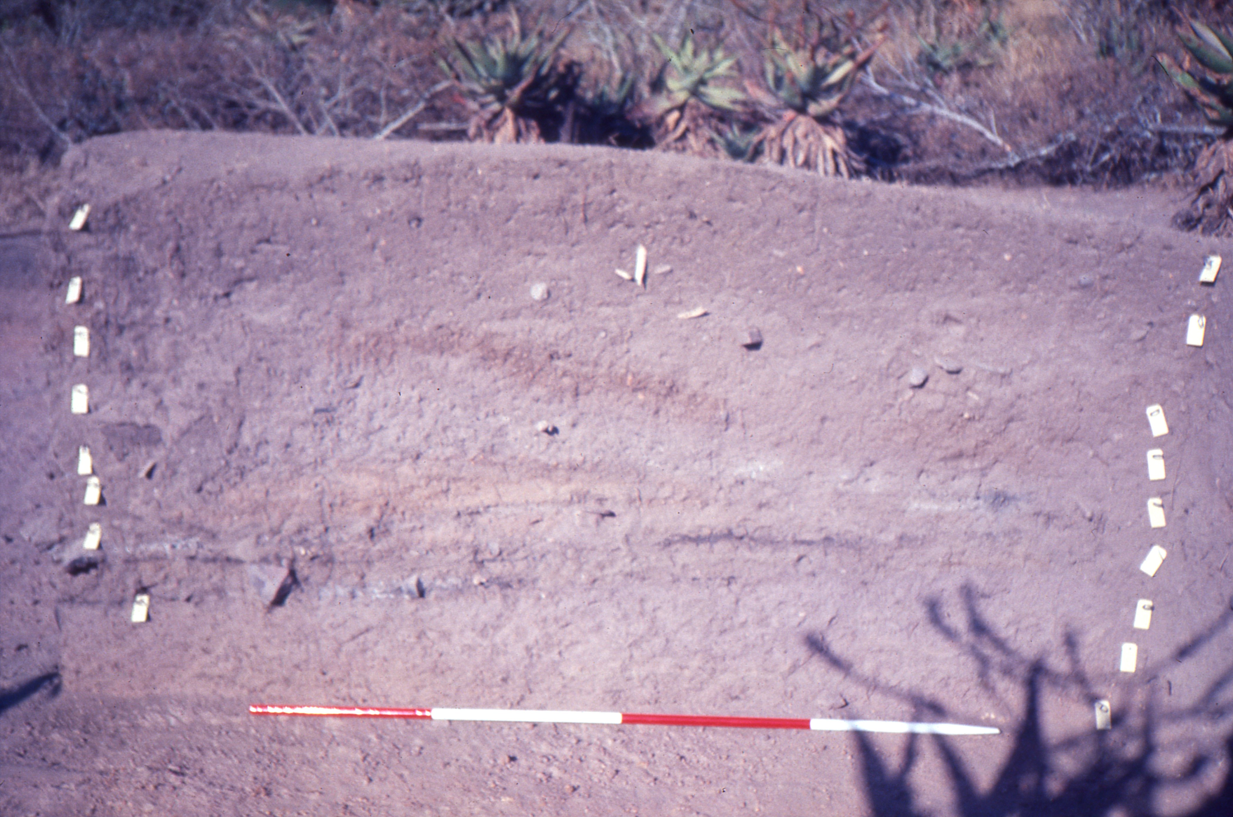 Attributions and conjectures [Source - Chloe Rushovich, 2019, for FHYA using information provided by Gavin Whitelaw: Slide of photograph of a section at uMgungundlovu (national site number 2831AD 004) taken by Martin Hall in 1978. Hall took a series of photographs of the 1978 field school excavations run by Oliver Davies.]