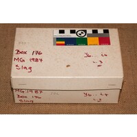 [Source - Chloe Rushovich for FHYA, 2019: File contains material identified by eThembeni Cultural Heritage Management for FHYA using AMAFA materials as 'slag', and a box with markings.]