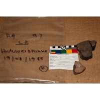 [Source - Chloe Rushovich for FHYA, 2019: File contains material identified by eThembeni Cultural Heritage Management for FHYA using AMAFA materials as 'hut floor and daga', and a box with markings.]
