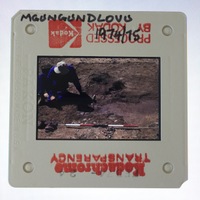 [Source - Chloe Rushovich for FHYA, 2020, using Tim Maggs's materials: File contains a photographic slide image taken by Tim Maggs at uMgungundlovu archaeological site, as well as the physical slide on which the image is housed.]