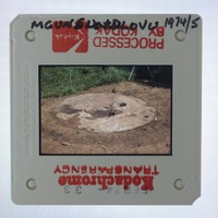 [Source - Chloe Rushovich for FHYA, 2020, using Tim Maggs's materials: File contains a photographic slide image taken by Tim Maggs at uMgungundlovu archaeological site, as well as the physical slide on which the image is housed.]