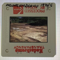 [Source - Chloe Rushovich for FHYA, 2020, using Tim Maggs's materials: File contains a photographic slide image taken by Tim Maggs at uMgungundlovu archaeological site, as well as the physical slide on which the image is housed.]
