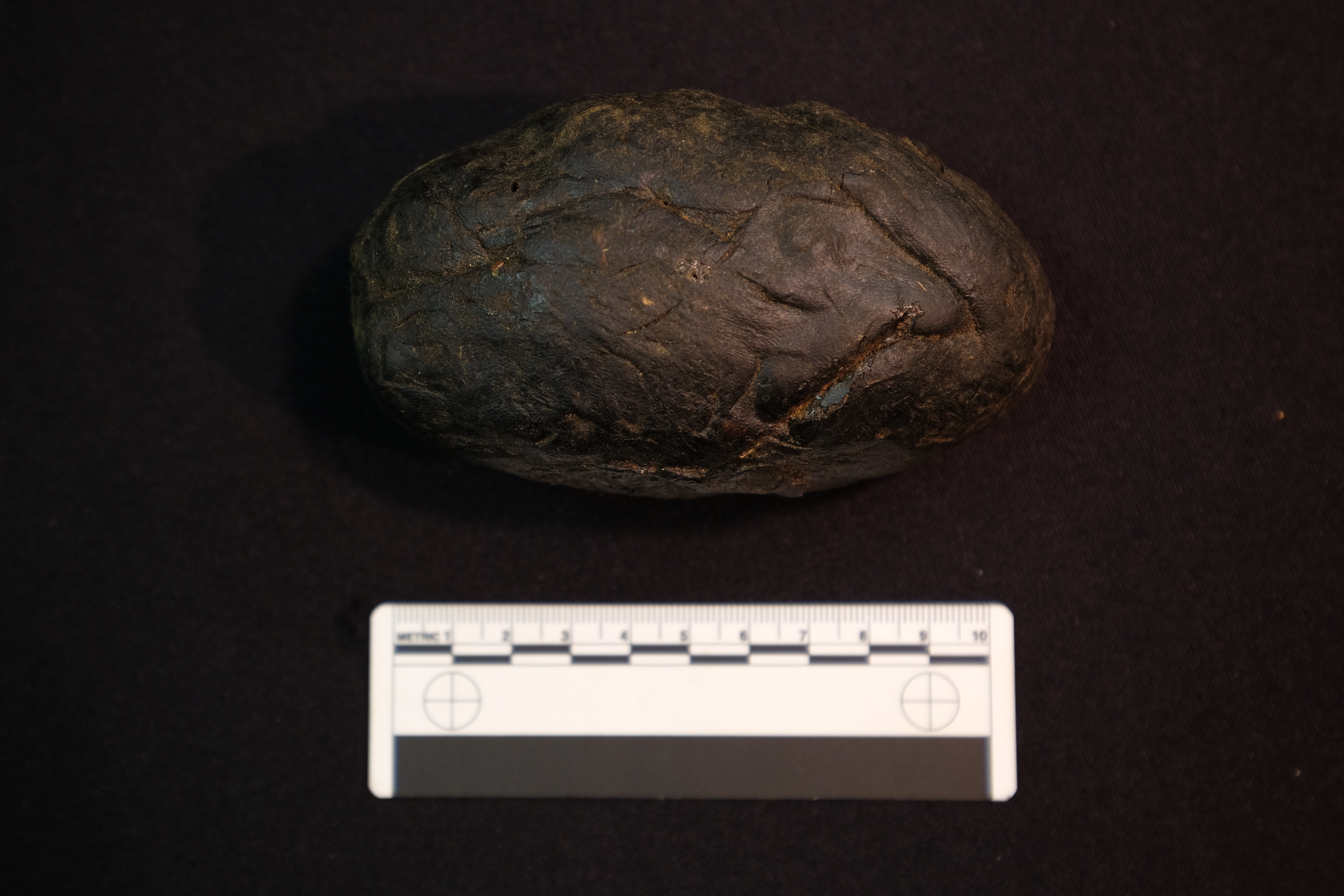 [Source - Chloe Rushovich for FHYA, 2021, using an entry in the KwaZulu-Natal Museum accessions register for 677: "Mass of scale insects (Ceroplastes sp.) (1) as collected [677A] (2) after heating over a fire [677B]. The wax (Unqiyane) is used for making the head-ring". This wax would be used alongside an isicoco polisher, such as the one found by Tim Maggs in at uMgungundlovu in 1973, which is housed with the 1975 material excavated at uMgungundlovu by Martin Hall.]
